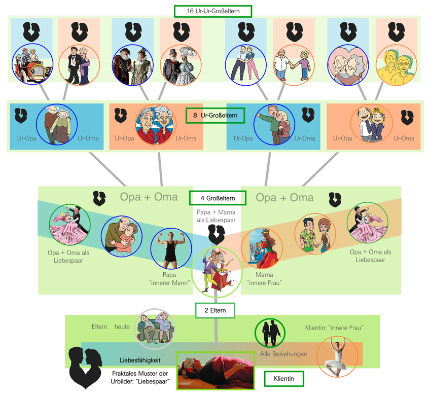 Vernetzung von Informationen aufzudecken. Fraktale Muster gibt es überall in der Natur, aber auch im Kollektiv - also Gruppen von Menschen. Diese fraktalen Muster bilden Strukturen. Auch das Gehirn ist so aufgebaut. So müssen wir ihm nicht sagen, wo es z.B Lernerfahrungen abspeichern soll, sondern das Gehirn bildet diese neuronale Strukturen von selbst. Es arbeitet synergetisch mit dem Prinzip “Selbstorganisation”. In diesen neuronalen Strukturen des Gehirns (Neurowelt) haben wir sehr wichtige “innere Bilder” gefunden, die immer wieder auftauchten. Wir nennen sie Urbilder. Sie repräsentieren Symbolkräfte des Menschen - also gestaltbildende Kräfte, die bis zur Körperebene wirken. Diese Urbilder sind evolutionär entstanden, beschreiben also die Grundkräfte - die Basisanweisungen der Software des Menschen. Alle Muster in der Natur entsehen aus 6-8 Faktoren (Kräfte). In der inneren Bilderwelt gilt dieses Gesetz ebenfalls: 6-8 Faktoren bilden Muster, die ein Symptom beschreiben und sich neuronal materialisiert haben. Man kann diese nicht wegdenken - nur wegdrücken, verdrängen, wegklopfen usw. Dann sind sie immer noch da, aber nicht mehr dem direkten Bewusstsein zugänglich. Sie sind aber immer noch im Unterbewusstsein vorhanden und wirken! |