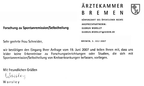 er wäre der zweite. Diese Selbstheilung ist eine Ausnahme. Beispiel: Wenn man bei Brustkrebs rechts nur die Konflickte aus der eigenen